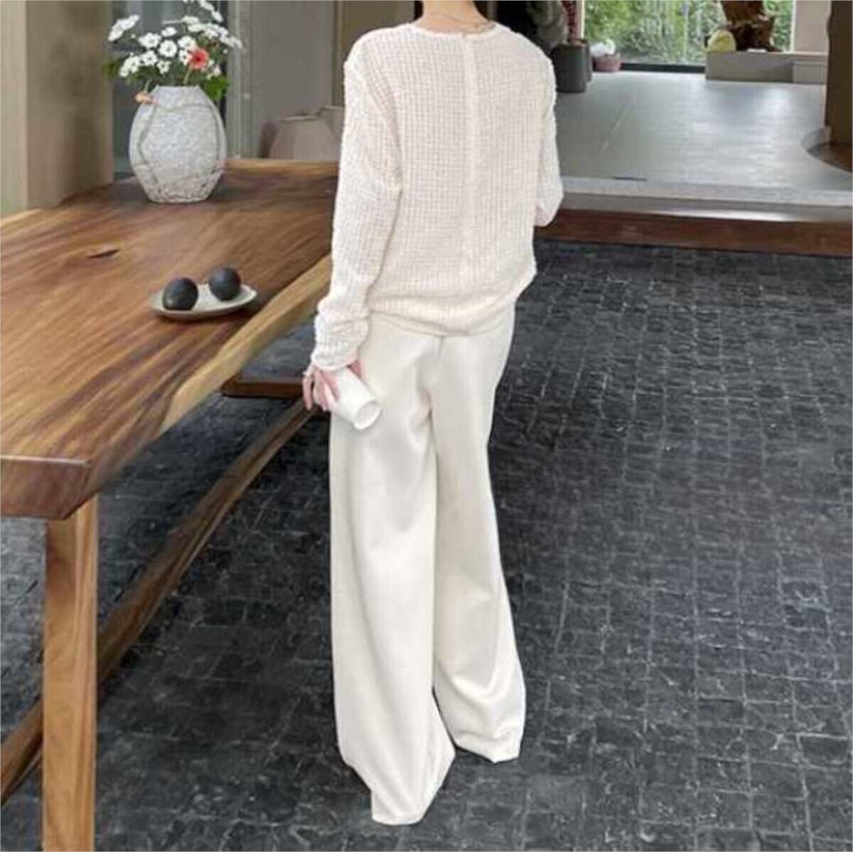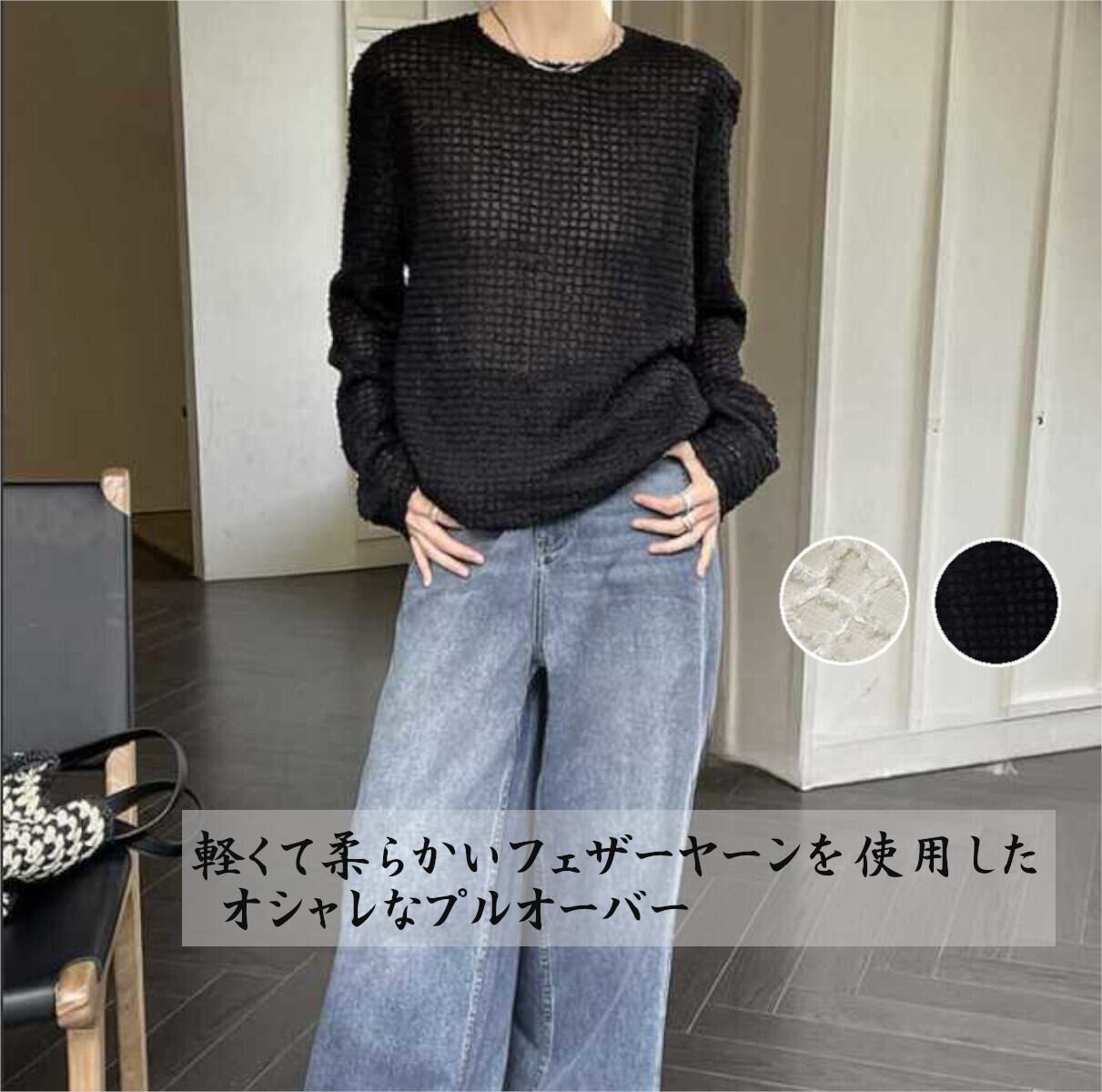 レディストップス シンプル フェザーヤーン 長袖 オーバーサイズ プルオーバー