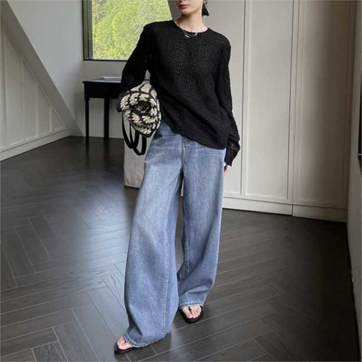 オーバーサイズのデザインなので、ゆったりとしたシルエットが特徴で、体型をカバーしつつもおしゃれに見せてくれます。