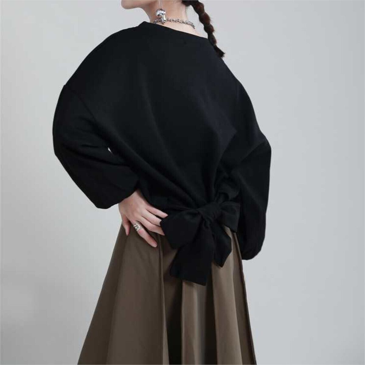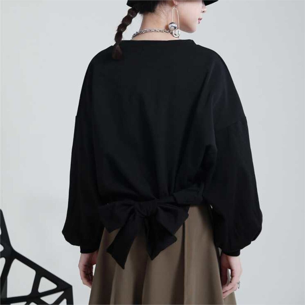 レディストップス バックリボン ラウンドネック 長袖 オーバーサイズ プルオーバー