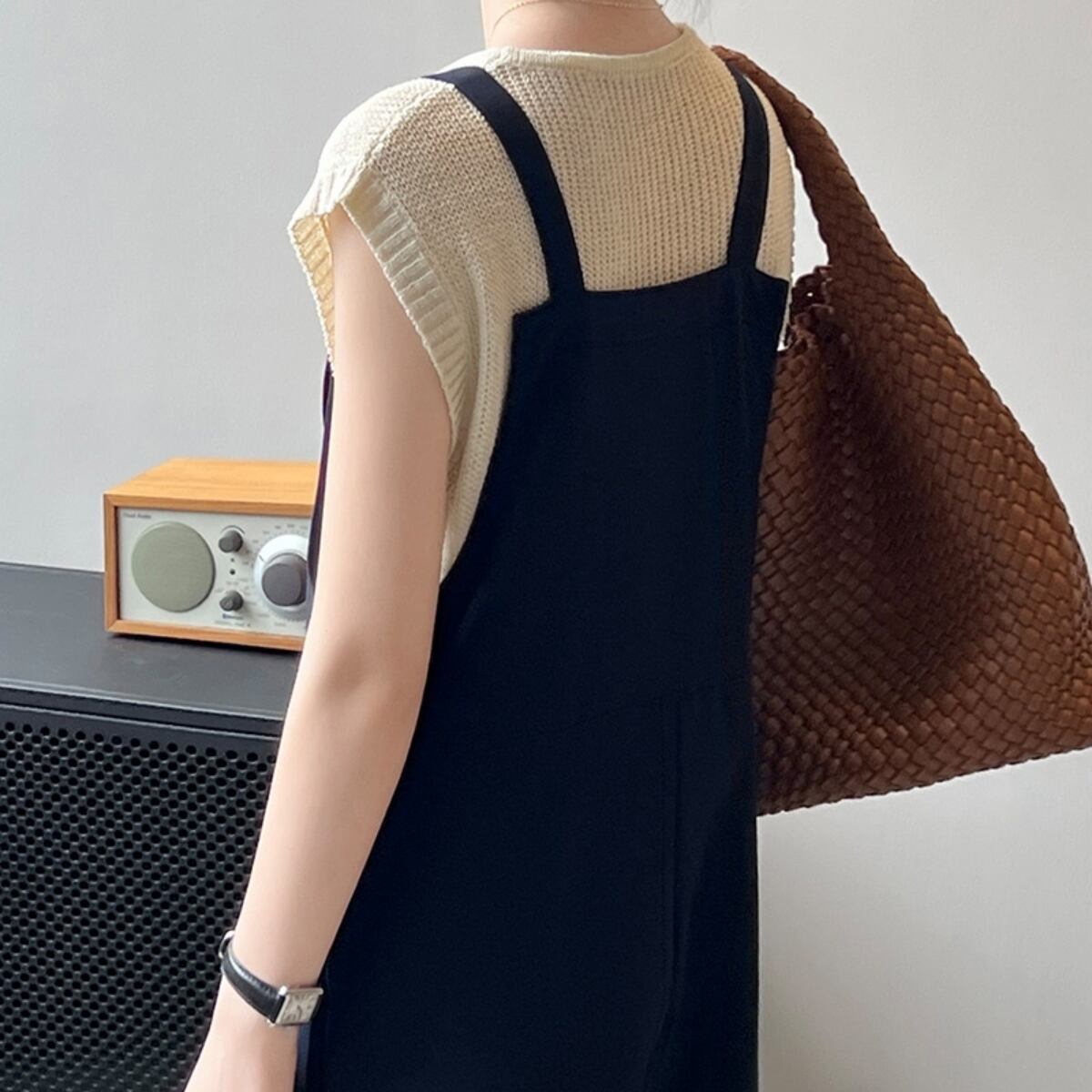 重ね着としてマストアイテムで、Tシャツやブラウス、スウェットなどどんなトップスにも◎