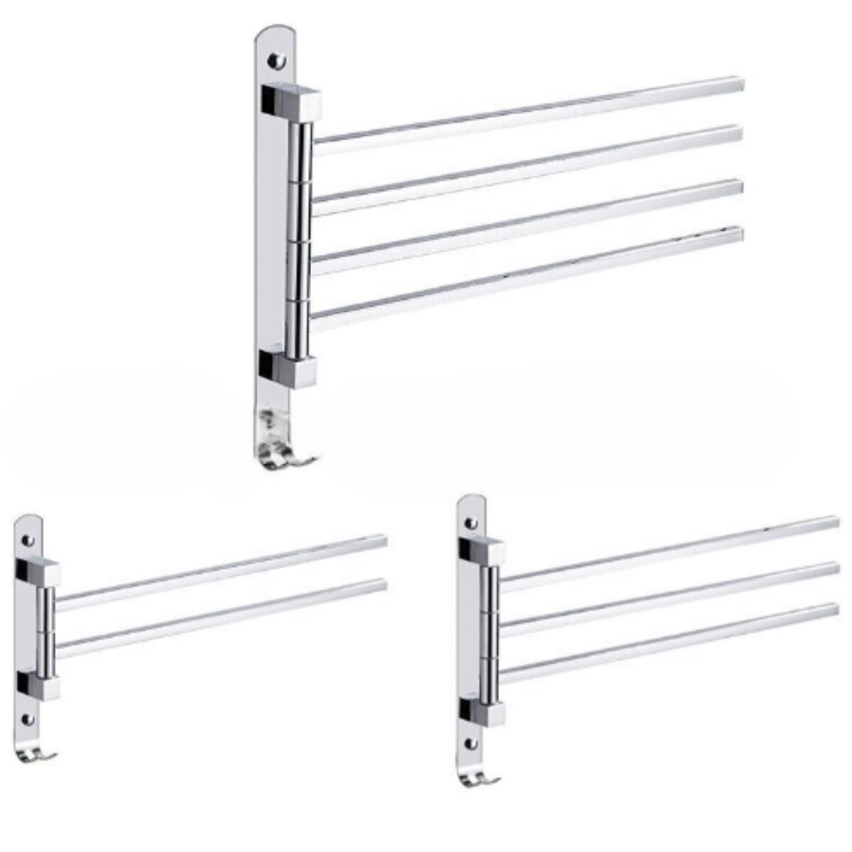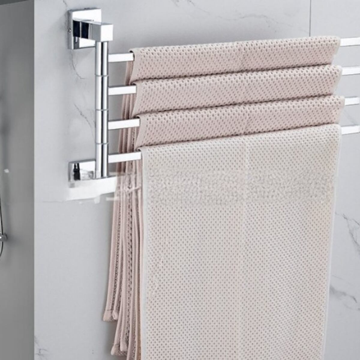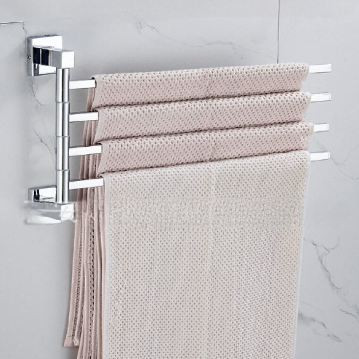 180°回転可能なスイングアーム設計で、互いに触れずに濡れたタオルと乾いたタオルを同時に掛けることができます!