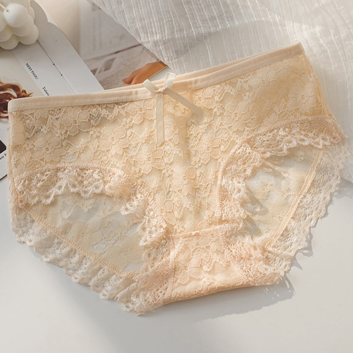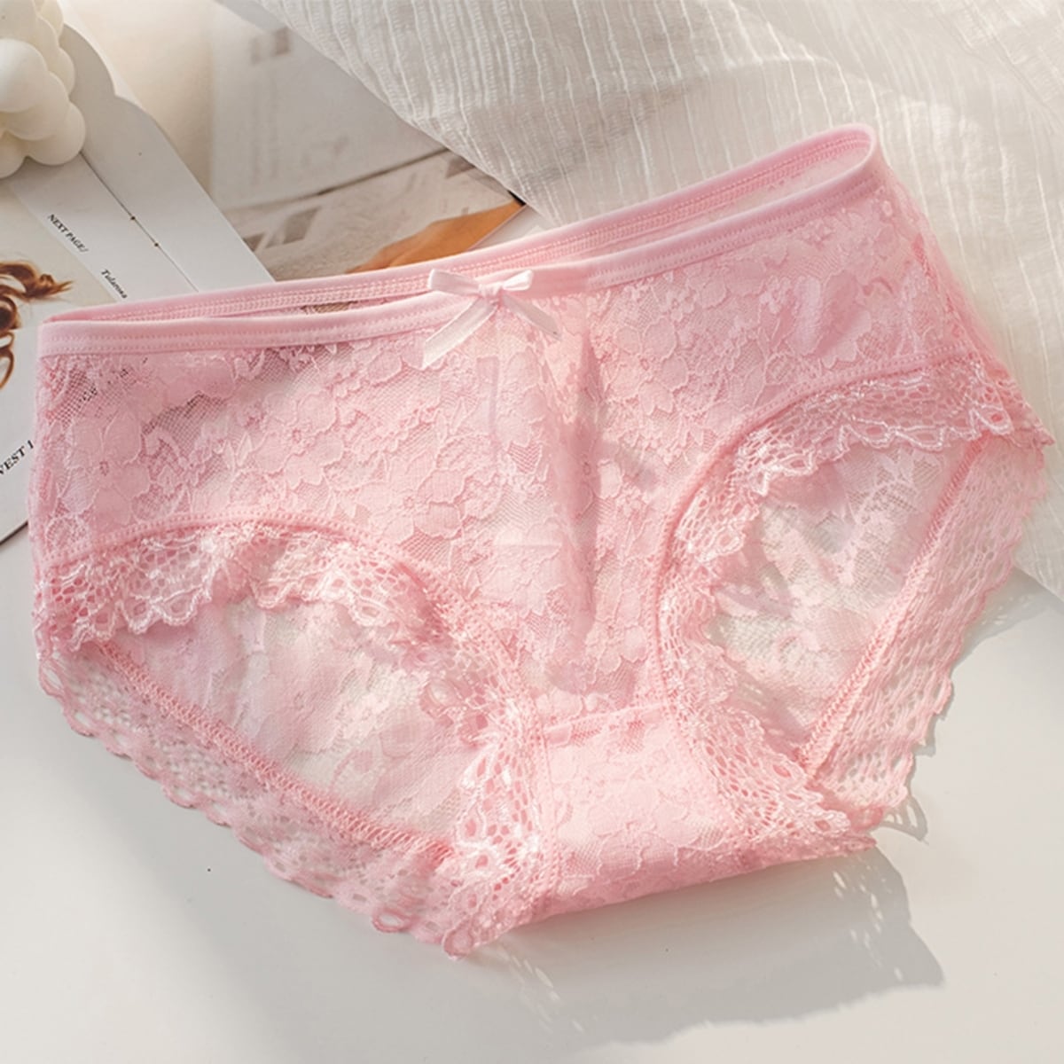 華やかな花柄と繊細なレースが魅力のショーツは、女性らしい魅力を引き立てます。