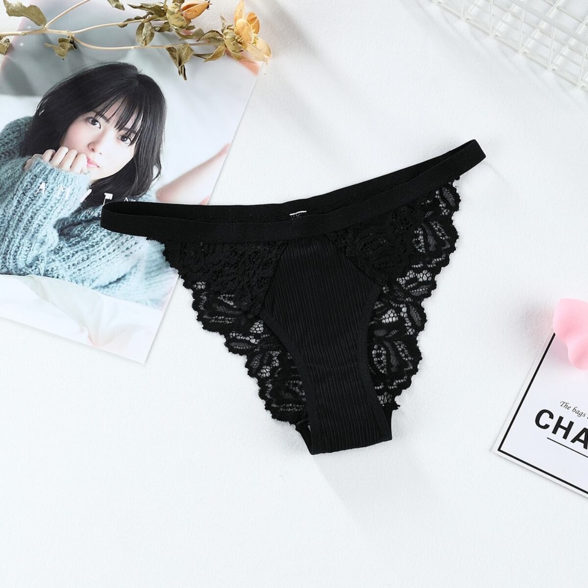 シンプルながらも上品なデザインで、特別な日のおしゃれやデイリーにもぴったり。花柄のデザインが女性らしさと可愛らしさを演出し、総レースの繊細なディテールがセンシュアルな雰囲気を醸し出します。