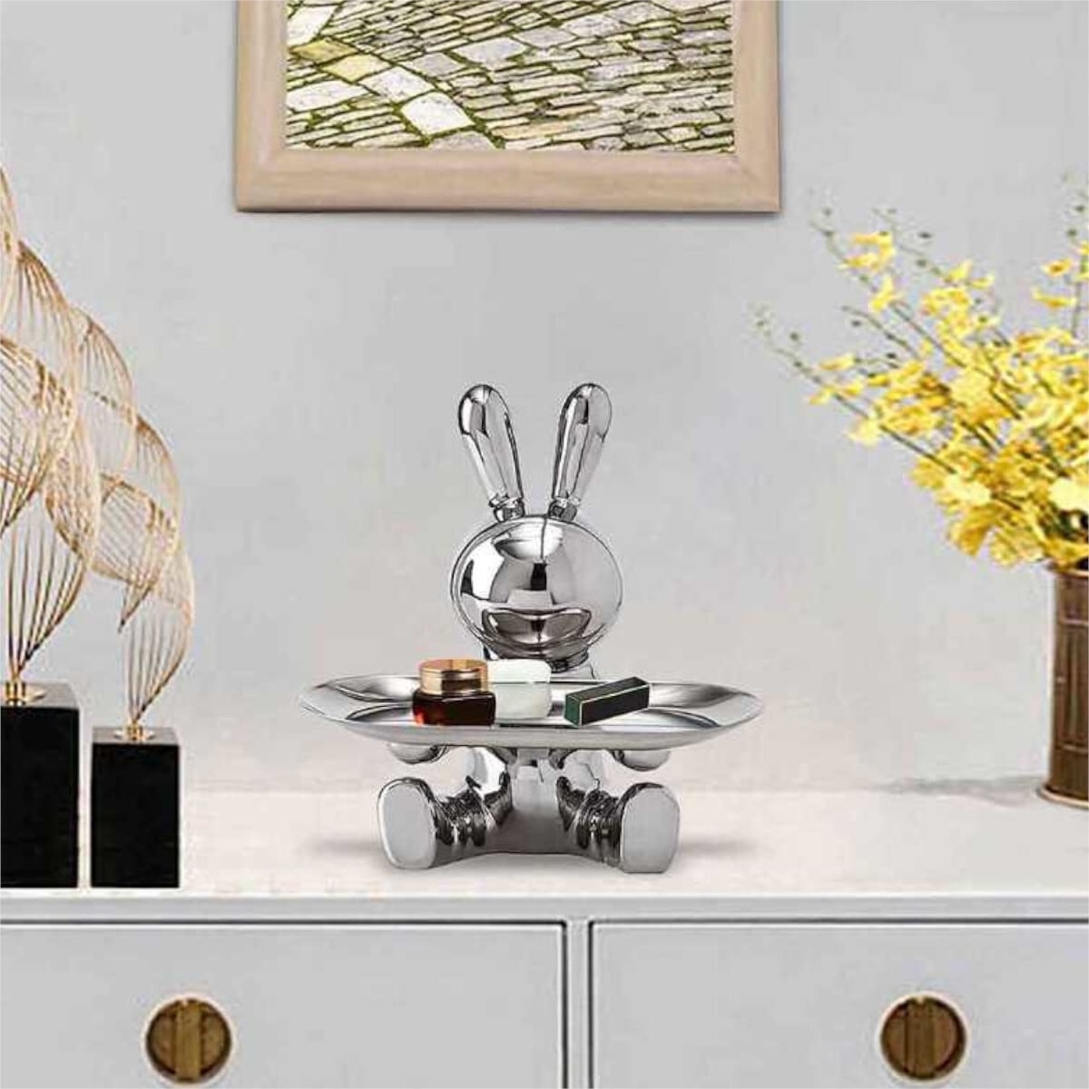 ウサギのトレイは美しいアートピースとしても楽しめます。本棚やディスプレイキャビネットに置いて、部屋の雰囲気を引き立てましょう。