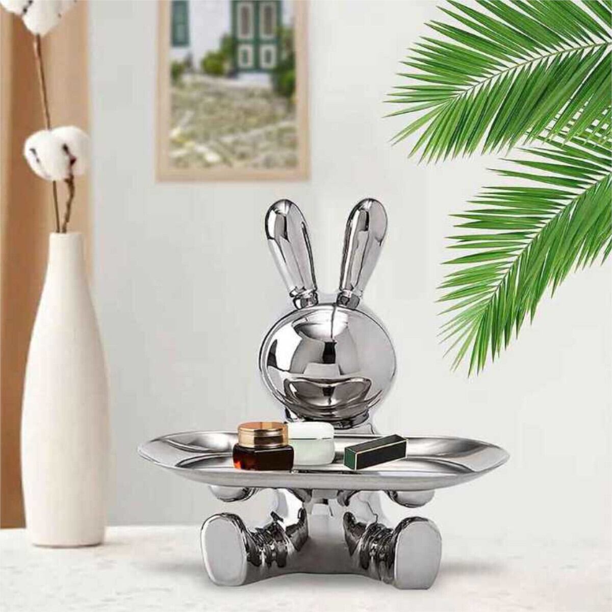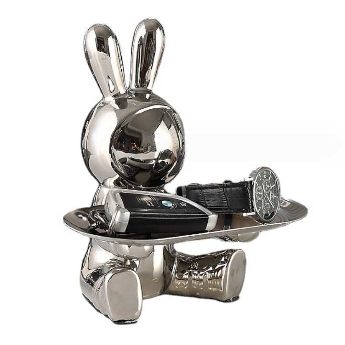 ウサギのキー収納トレイは、玄関テーブルやオフィスデスクに置くのにぴったりの小物入れで、アートとしても素敵なホームデコレーションアイテムです。