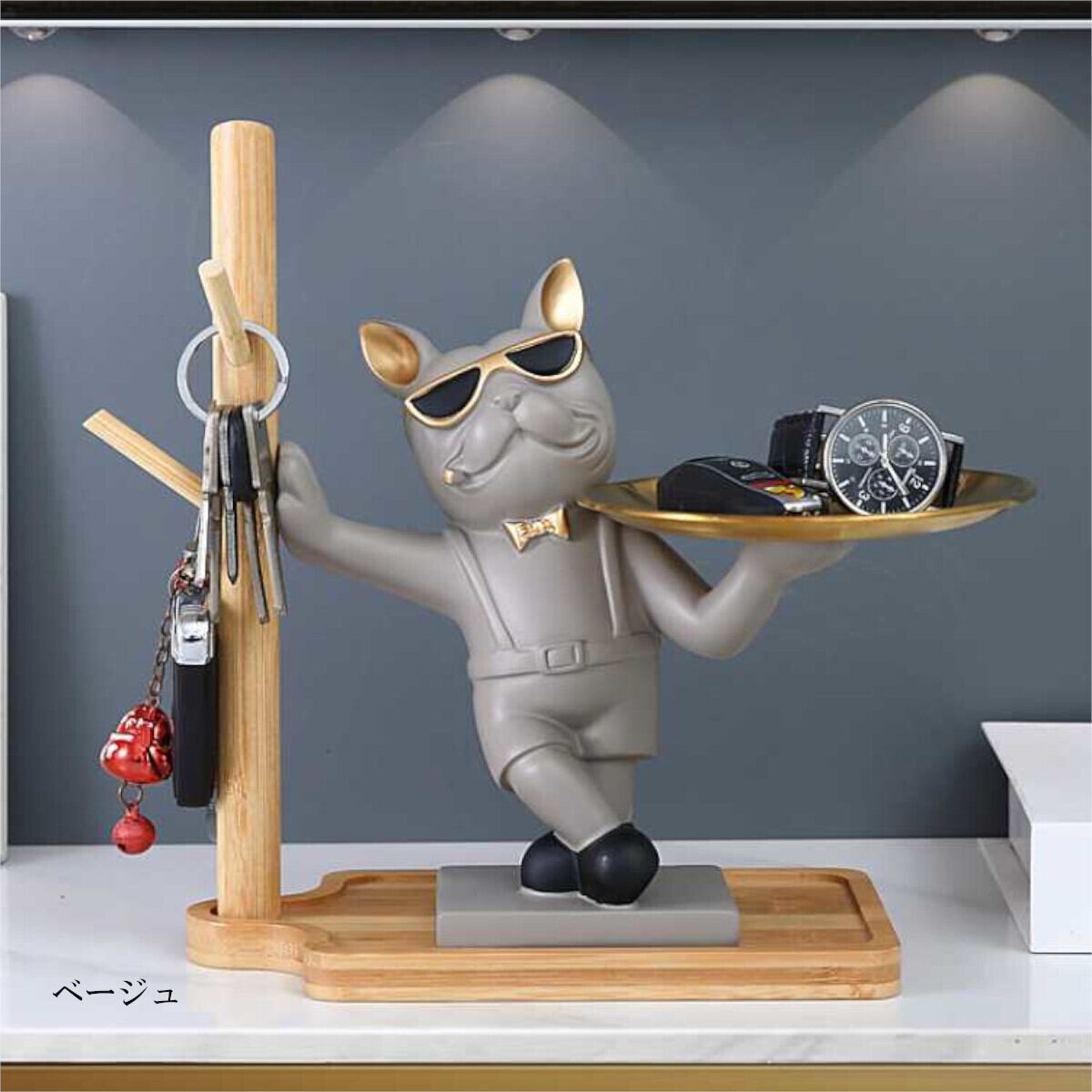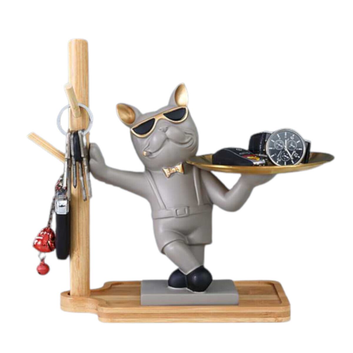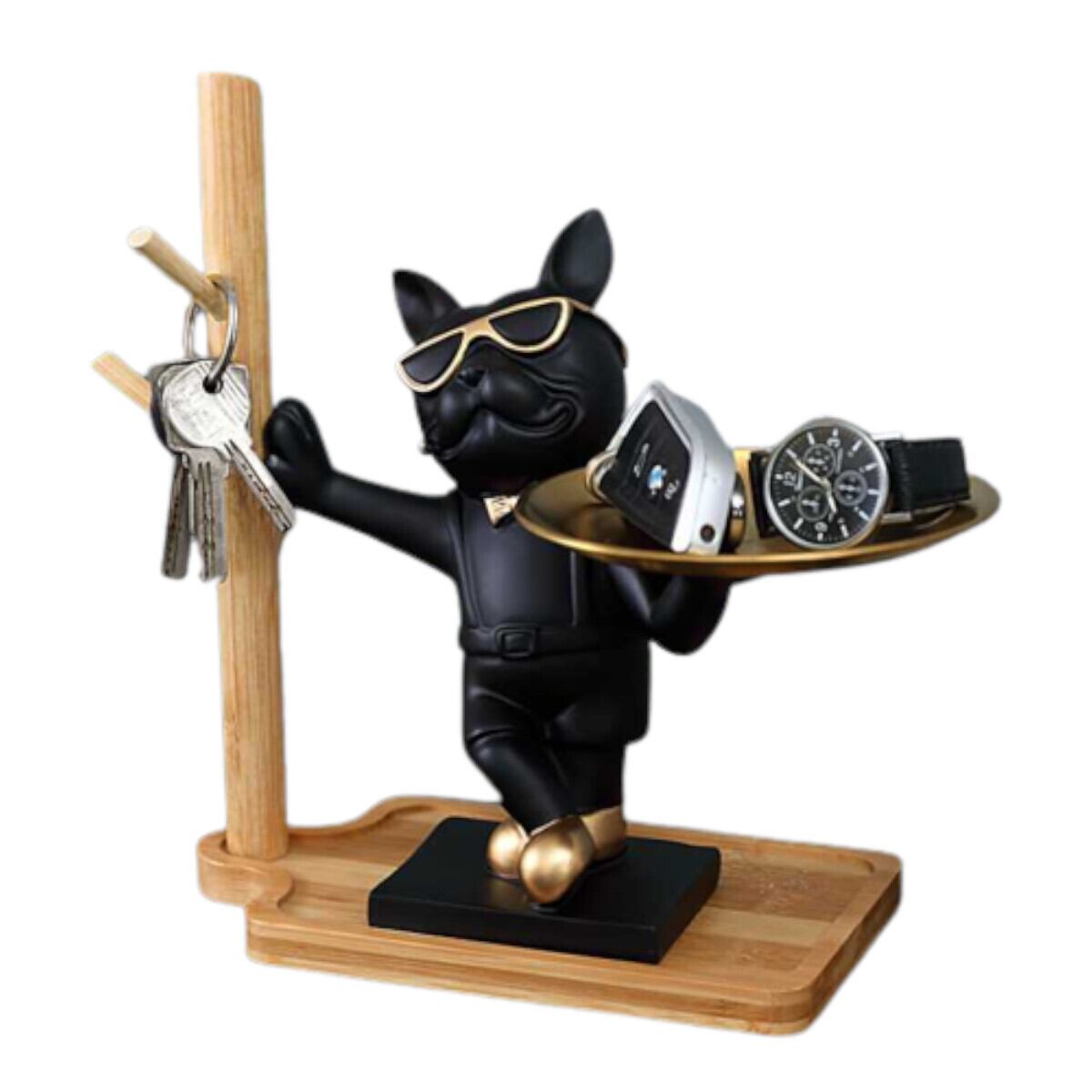 フレンチブルドッグ収納トレイ 玄関テーブル用 ブルドッグ像 キャンディディッシュ オフィスデスク用 小物入れ アート ホームデコレーション