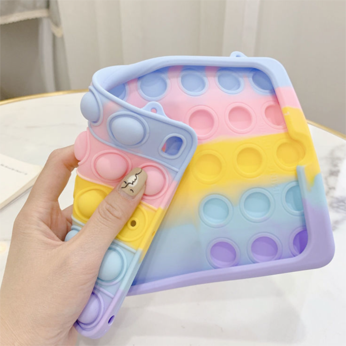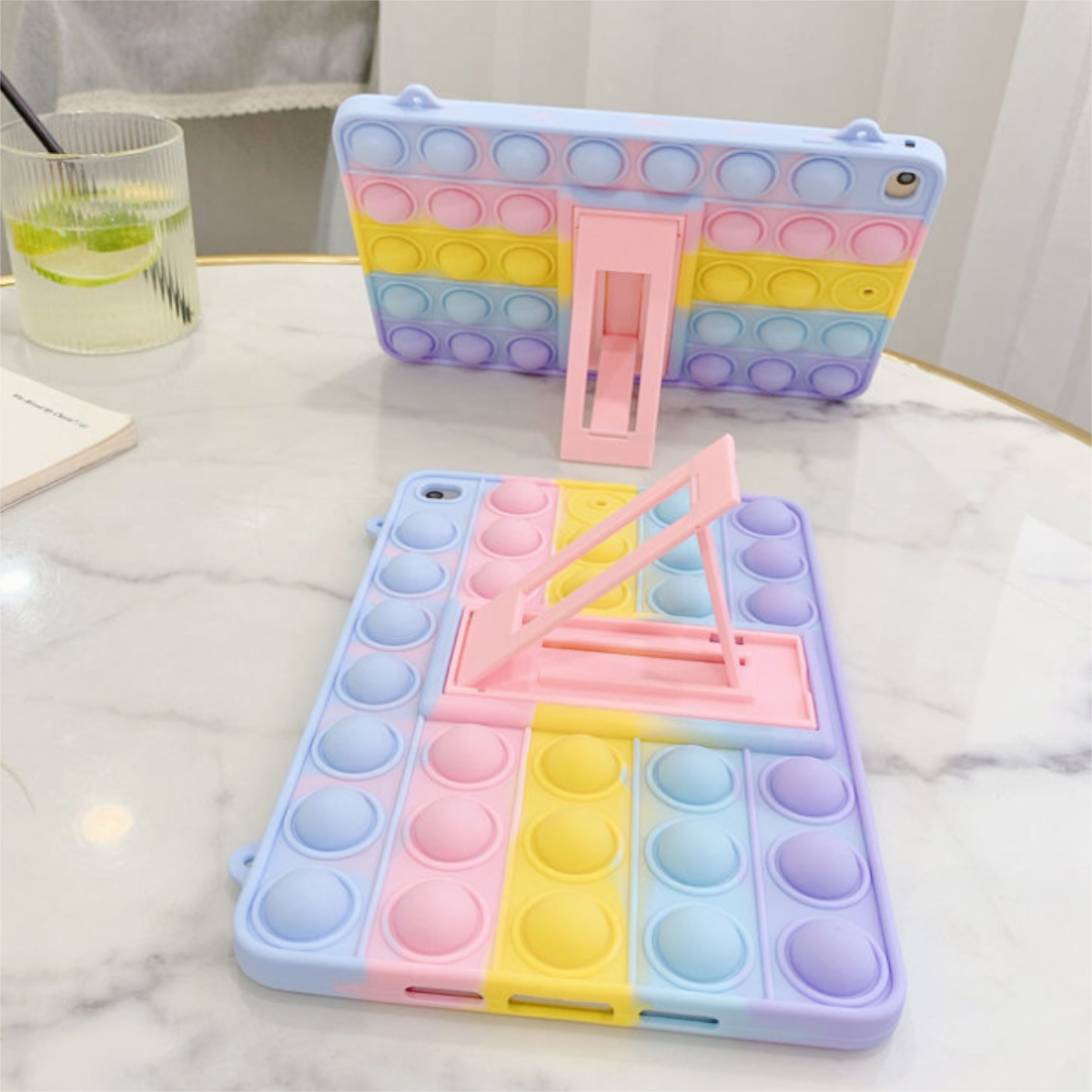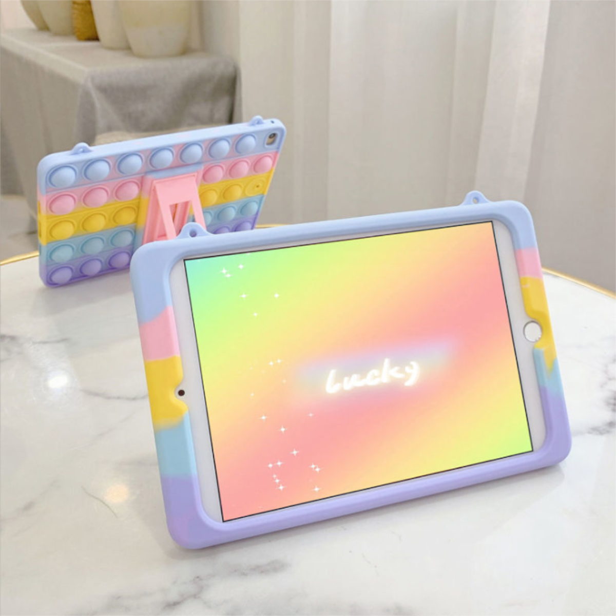 iPad ソフトシリコン耐衝撃タブレットカバー スタンドポータブルピンチレインボーバブルタブレット