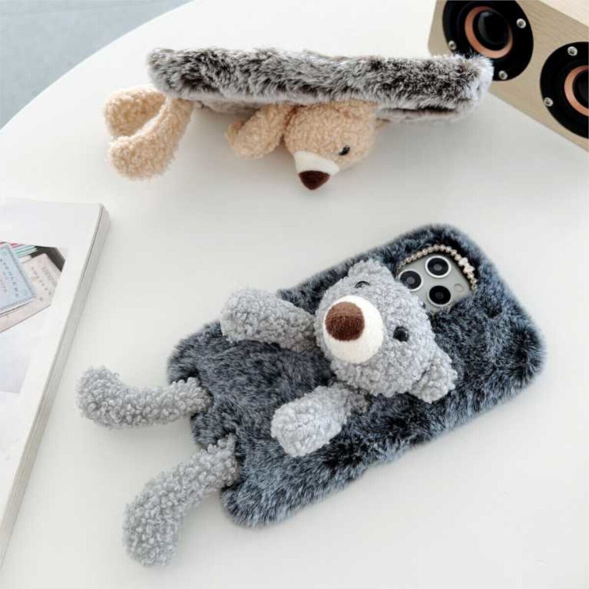 このケースは、クマとウサギのぬいぐるみが、ふわふわで柔らかなデザインが特徴です。