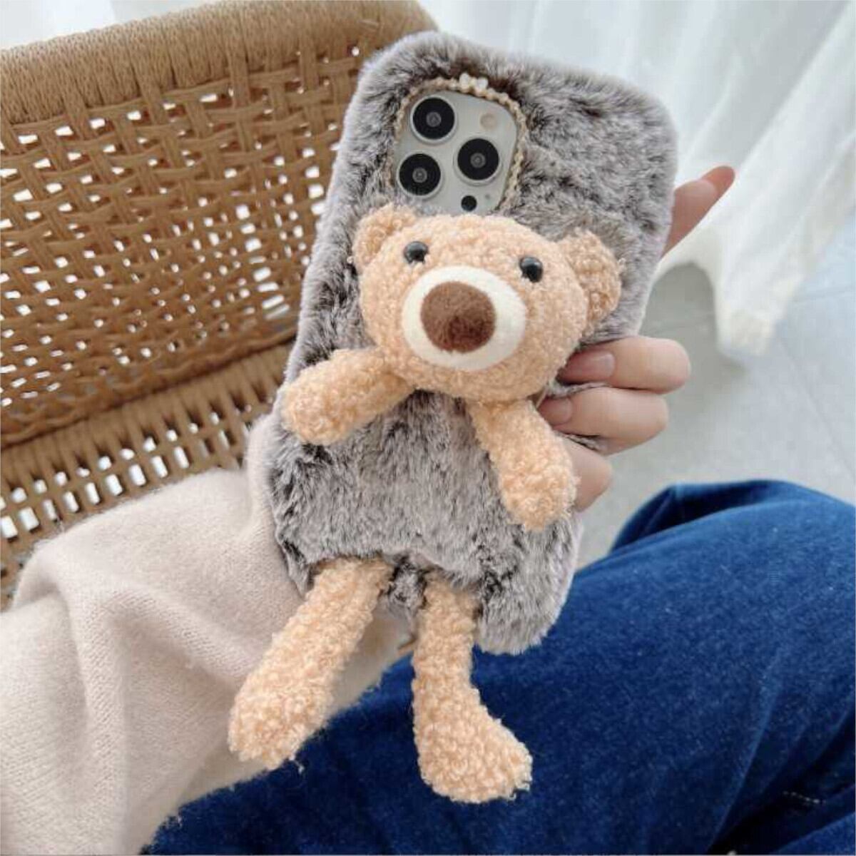 クマとウサギ人形の iPhone ぬいぐるみ携帯電話ケース ふわふわ スマホケース