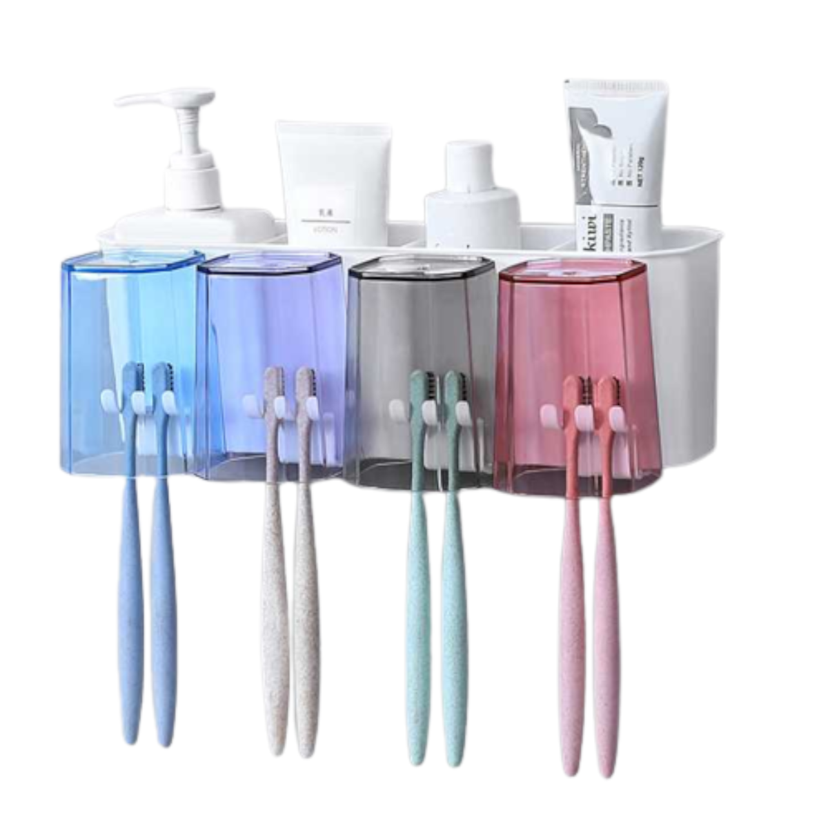 この歯ブラシスタンドは、便利なコップが付いており、4人用の歯ブラシホルダーとして理想的なアイテムです。